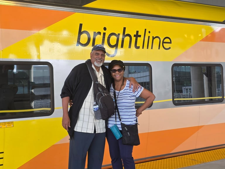 After an amazing time in Fort Lauderdale, Wayne and I decided to continue our journey by booking a stay in Orlando—and this time, we opted to take the Brightline rail. We had heard so many glowing reviews from YouTube influencers and fellow travelers that we wanted to experience it firsthand. To get the full experience, we even upgraded to Premium seats. So, bright and early on January 25, 2026, we caught an Uber and headed to the Brightline station with high expectations.